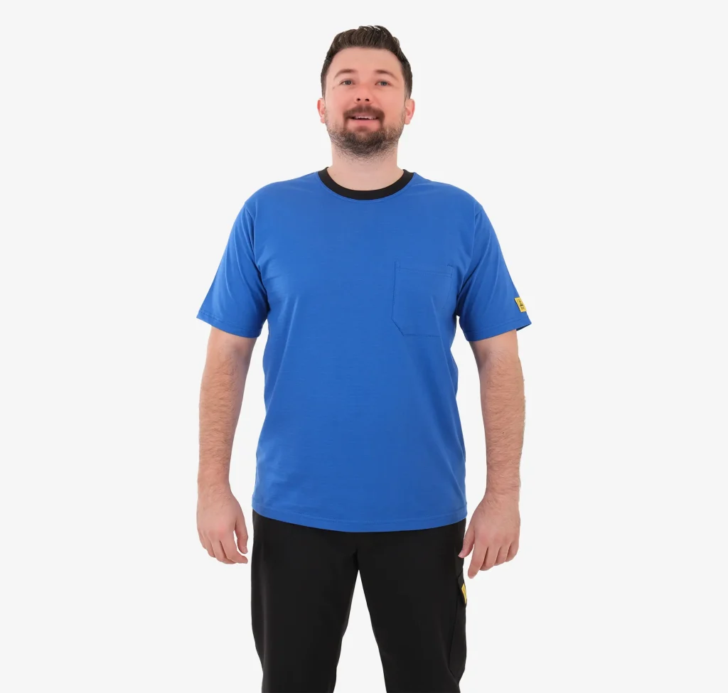 Antistatisches ESD-T-Shirt wird gemäß den Normen EN 1149-5 und EN 61340-5-1 hergestellt.